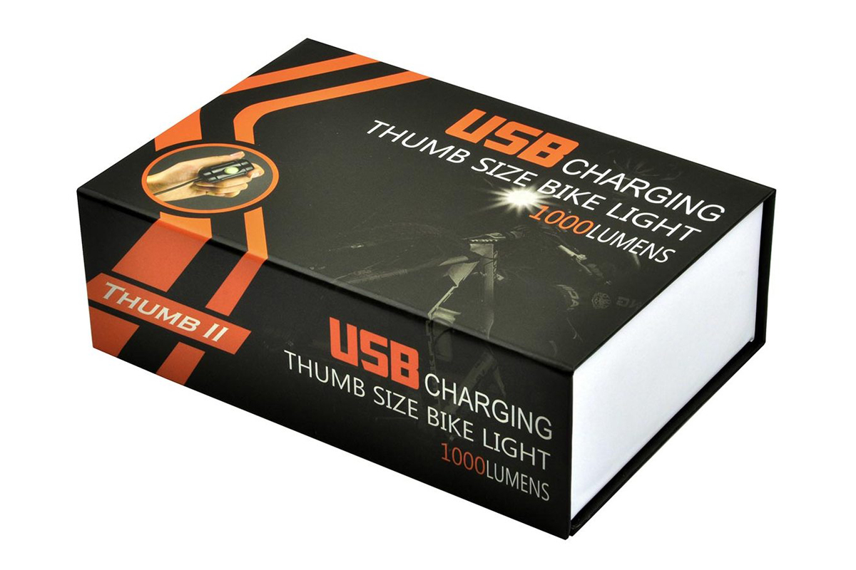 Фонарь SANGUAN SG-Thumb II формирует мощный пучок света силой 1000лм, хорошо освещая участок дороги до 50 метров. Отличие от фонаря SANGUAN SG-X1 , по эффективности освещения незначительное.Наибольшая эффективность наблюдается на расстоянии до 20 метров. При уличном освещении, перед колесом велосипеда виден ярко освещённый участок около 5 метров (подсветка ям и неровностей). Световой поток испускает один светодиод, который работает от выносного аккумулятора (4400mAH, 4,2V), заряжаемого через USB-кабель от порта компьютера. Время заряда 6-8 часов. Время работы в режимах: 100% яркости - 3 часа; 70% яркости - 6 часов; 40% яркости - 15 часов; 10% яркости - 30 часов. Класс влагозащиты IP66. Фонарь может быть закреплён на руле велосипеда с помощью резиновых хомутов, а также на голове или шлеме велосипедиста, с помощью наголовного крепления (идут в комплекте).